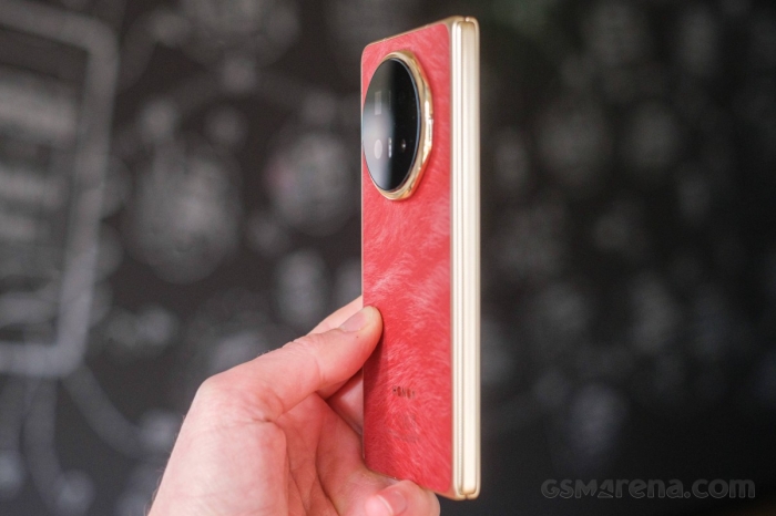 Dưới ánh sáng mạnh, các đường vân trên mặt lưng có thể thay đổi độ tương phản, khiến màu đỏ đậm dần chuyển sang sắc nhạt gần như xám, tạo nên hiệu ứng thị giác rất khác biệt so với các mẫu máy gập hiện nay.